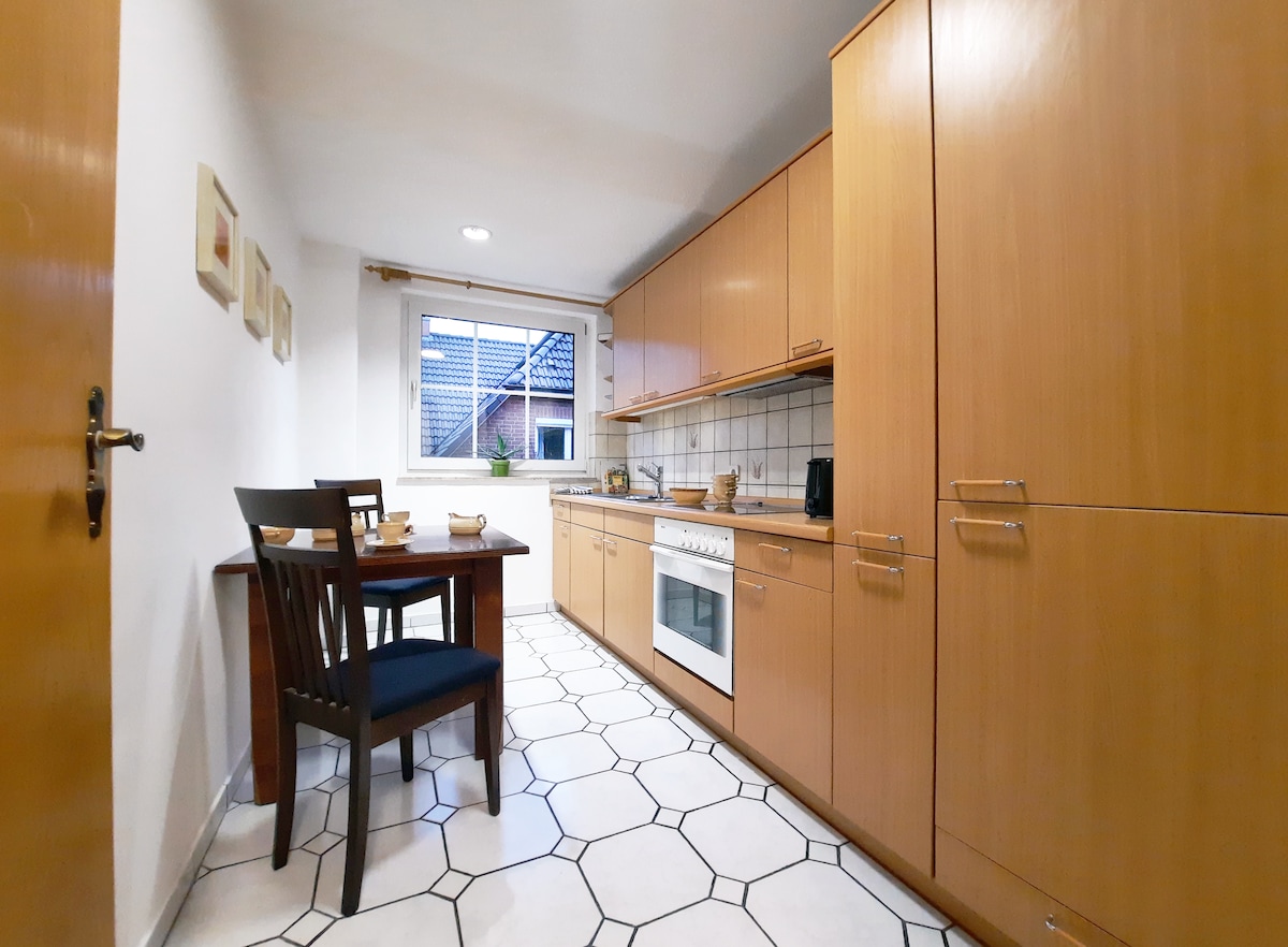 The apartment is located on the upper floor of a two-family house. It is centrally located but also in a quiet location of Harsefeld. The size is about 110 square meters, where up to 4 people can really feel comfortable :o) The proximity to Buxtehude (17 km), Stade (22 km) and Hamburg (30 - 80 km) and also accessible by train, is for many guests the reason to book our apartment at reasonable prices.