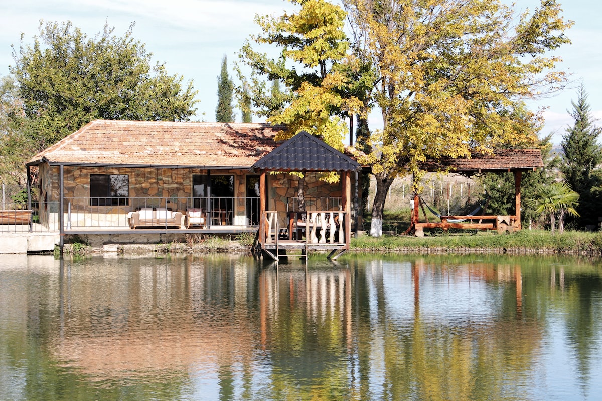 Attractive wooden cottage “Sionis Piri” on the shore of the Lake “Sioni”. You have the opportunity to relax in a cozy wooden cottage, located on the first line of the Lake, in the center of Sioni.The view of the lake and mountains from the balcony guarantees you calmness and relaxation. The interior is decorated with natural wooden elements, which creates a warm atmosphere. In the mornings, you can have breakfast and your coffee with the sunrise near the Lake.