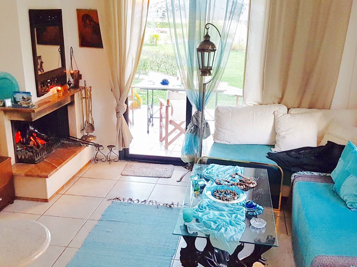 Lovely summer house at Kalamitsi beach, the best summer destination! In the apartment there is a bedroom with a big double bed, a living room with a corner sofa that becomes a double bed. The apartment is fully equipped with furniture and kitchen equipment. It's located in an excellent area, only 100m from one beach (in Thalatta camp) and 400m from Kalamitsi beach, which is ideal for families and couples for a peaceful stay.