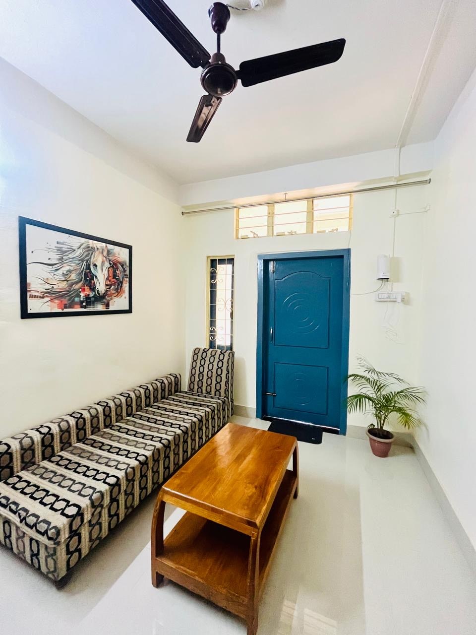 Come for a calm and peaceful stay at this one of a kind living cum bedroom flat attached to a beautiful terrace garden. Since it is an independent terrace flat, you can enjoy all the privacy you want while still having access to people within the premise in case you feel like connecting with them. This sets a perfect balance for anyone who might want to cherish the vibe of both worlds, the comfy, cozy solitude and also the warm, friendly, social interactions with people as per choice.
