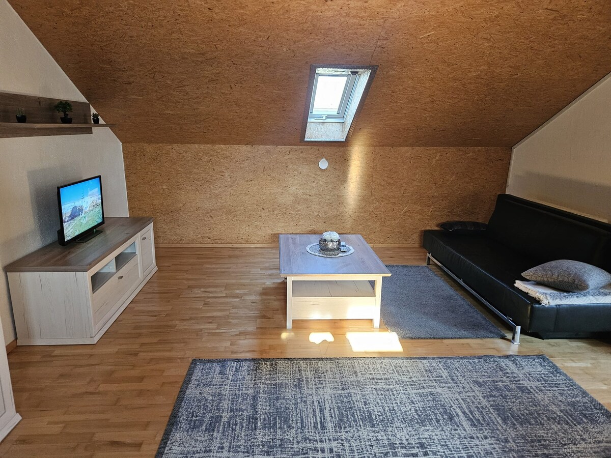 "Especially now, just get out of the city and into the countryside." The apartment is located on the top floor of a completely renovated house dating back to 1745. Modern furnishings, bright rooms, an open layout, and 92 square meters of space. It sleeps 1-6 people. You can relax comfortably on a small balcony. Access is via a separate staircase. We look forward to welcoming guests who want to explore our beautiful Kraichgau region or use it as a stopover on their journey.