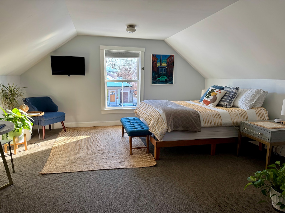 Mixing contemporary styling with old-world charm, the Apartment in the nationally registered Chapman House offers a relaxing, private stay, only minutes to downtown! Whether you plan to soak in the shared hot tub, cool down in our pool or relax by the fire pit, our half-acre yard offers a tranquil space for all. The apartment has a chef's kitchen, dining, and living room with gas fireplace. NB., use of the living room bed may incur a charge. We have a L2 EV charging outlet. #allarewelcome