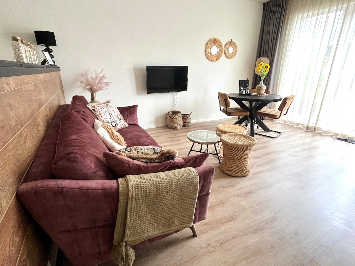 This trendy decorated cosy flat (45 m) is located next to the beautiful dunes of Zandvoort and is fully equipped. You will lack nothing. (Including private parking space) The beautiful beach with cosy beach clubs is within walking distance as is the lively centre. The train station is a 10-minute walk from the apartment with a direct connection to the beautiful cities of Haarlem (10 minutes) and Amsterdam (30 minutes).