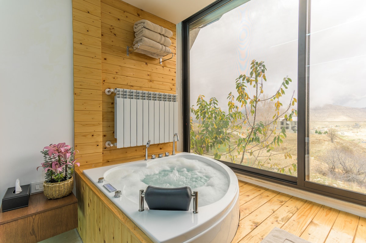 A spacious suite with a spa bath for 2 persons with 1 cozy king-size bed each, jacuzzi, a chimney, floor heating, one bathroom, an equipped kitchen, and a balcony with an amazing view of the Faraya mountains.