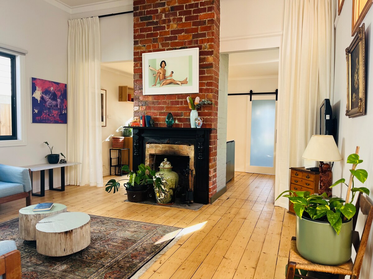 This 100 year old workers cottage is all about bespoke interiors The walls and shelves filled with gorgeous art work, the home has specially sourced vintage pieces scattered everywhere, the beds are filled with luxurious linens and the lounge has a 3 seater couch you may never want to get up from. Centrally located, across the road from the South Melbourne Markets, walking distance to the Albert Park Lake and a quick tram trip to the CBD. Please note- no TV, so bring devices if needed.