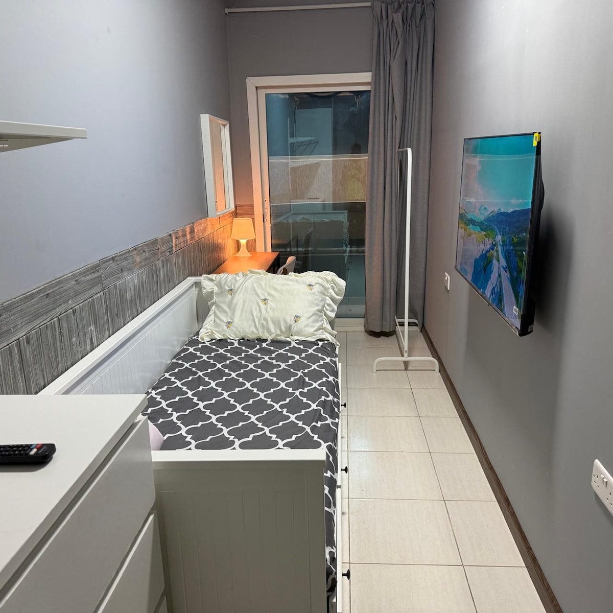 The studio offers elegant interiors and stunning sea views from your private balcony. The unit faces a noisy 24/7 construction site on Al Marjan Island, so noise can be expected at any time. Despite this, you’ll enjoy a comfortable stay with direct access to a private beach, rooftop swimming pool, gyms, restaurants, supermarket, laundry, and many more convenient amenities just 5 min. away. High-speed WiFi and a smart TV are included to keep you connected and entertained throughout your stay.