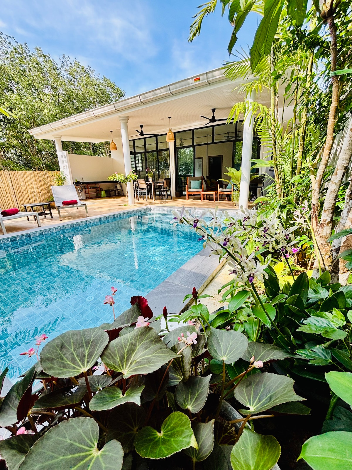 Luxury Modern Pool Villa | Tropical Hideaway Step into your own modern sanctuary, where clean architecture, floor-to-ceiling glass, and lush tropical greenery come together to create a calm, stylish escape. This pool villa is perfect for couples, families, or small groups looking for comfort, and understated luxury—just far enough away to feel peaceful, yet close to everything you need.