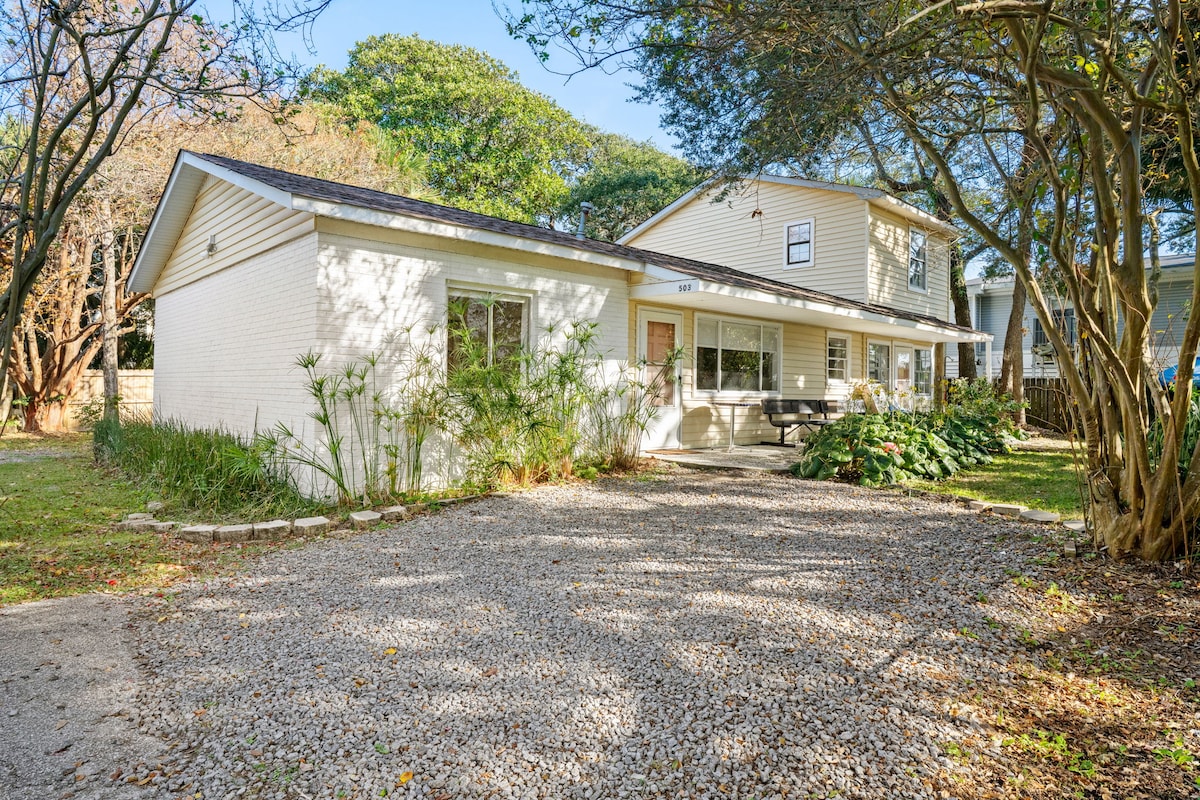 Location, location, location. Literally steps to the sand from this relaxing beach abode! Just roll out of bed and walk through the tree lined tunnel straight to the boardwalk of your own fairly private beach! Bring your dogs and let them roam the huge fenced in backyard lined with live oaks and a fire pit for the family to unite. A quieter part of Folly where the surfers like to shred but still only a short while to the bars of Folly and just 15 minutes from downtown. You will love this place!!