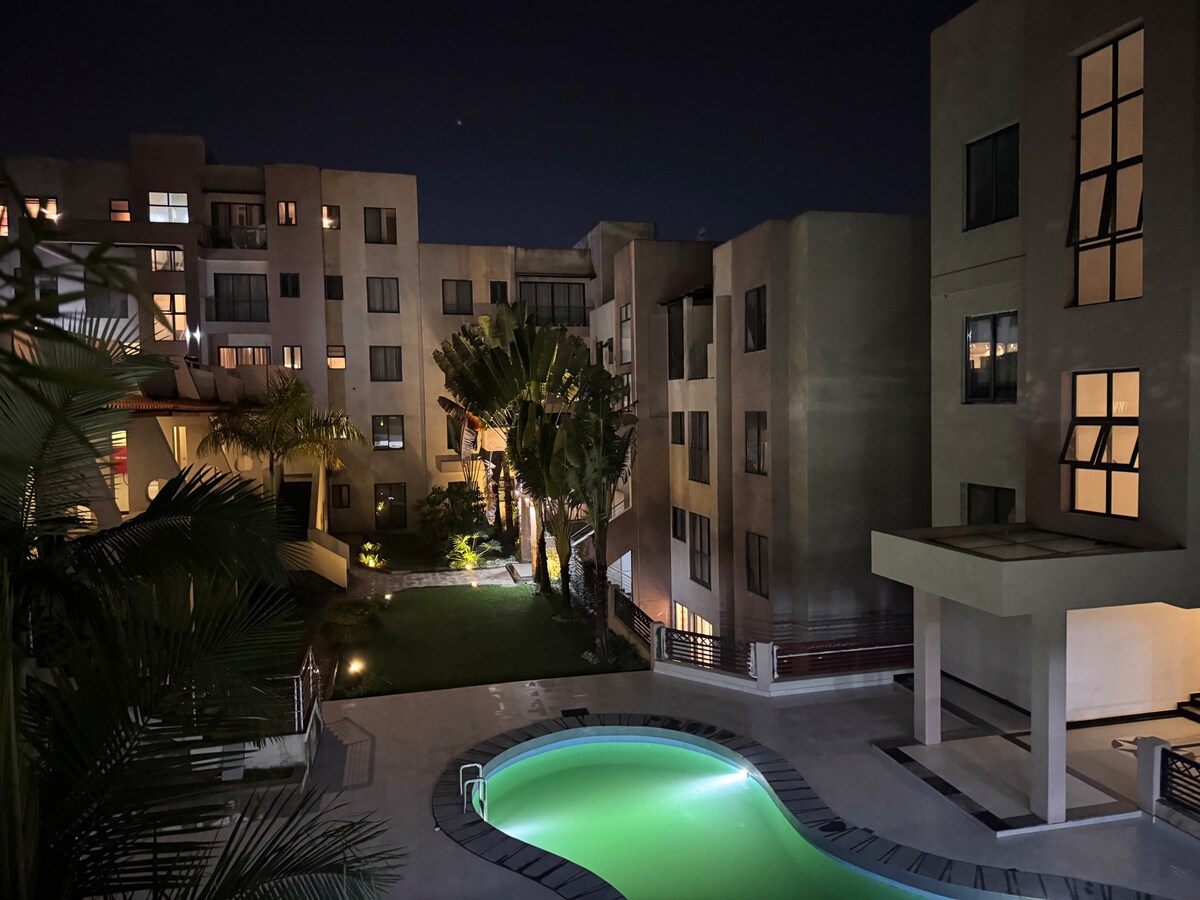Homey, cozy, and nestled in a beautiful neighborhood, this apartment is close to Lemigo Hotel,Kigali heights shopping mall, 5mins to Radisson Blu and Kigali Convention Center, 8 mins to BK Arena,15mins to the airport and for nightlife lovers, you’re 8 mins away from Kigali’s best party spots in Kimihurura,Like Boho,La Noche , Atelier du Vin and several other popular restaurants and bars. With a full range of amenities, including a pool, this apartment is designed to make you feel right at home