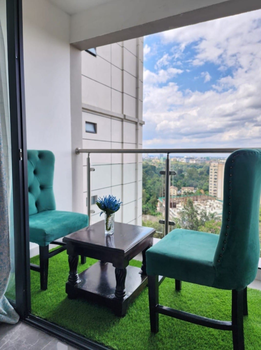 Our 5* elegant serviced, 9th floor spacious 2-bed, 2-bath features a luxurious master bedroom with a king-sized bed along with two balconies offering stunning city views. 4K TV w/ Netflix & Prime to unwind, High speed WiFi, a fully equipped kitchen w/ Coffee maker and blender, coffee and water supplied, Washer&Dryer, Cleaning service and access to a lounge, gym, play area, pool and a rooftop garden. Located near Kilimani, Westlands and Lavington attractions. Your serene city escape awaits!
