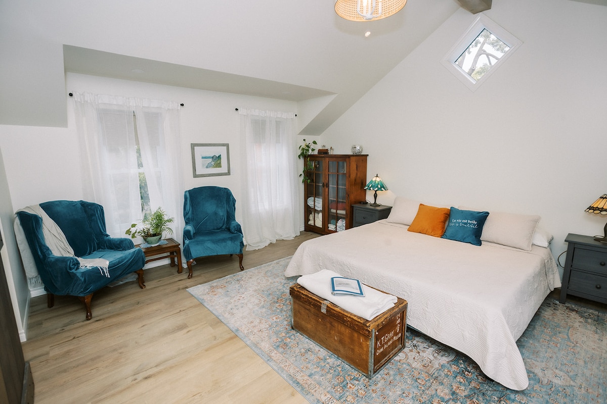 Private second floor apartment above our Coach House style garage on our upscale estate property. We're situated on an acre of land filled with mature trees & chirping birds- you'll have quick access to Wortley Village, downtown & Victoria Hospital. If you love upscale heritage architecture blended with contemporary decor, this is a great spot! My place is good for couples, solo adventurers, and business travellers. 15% weekly, 30% monthly discount, 30+ day stays exempt from 13% occupancy tax