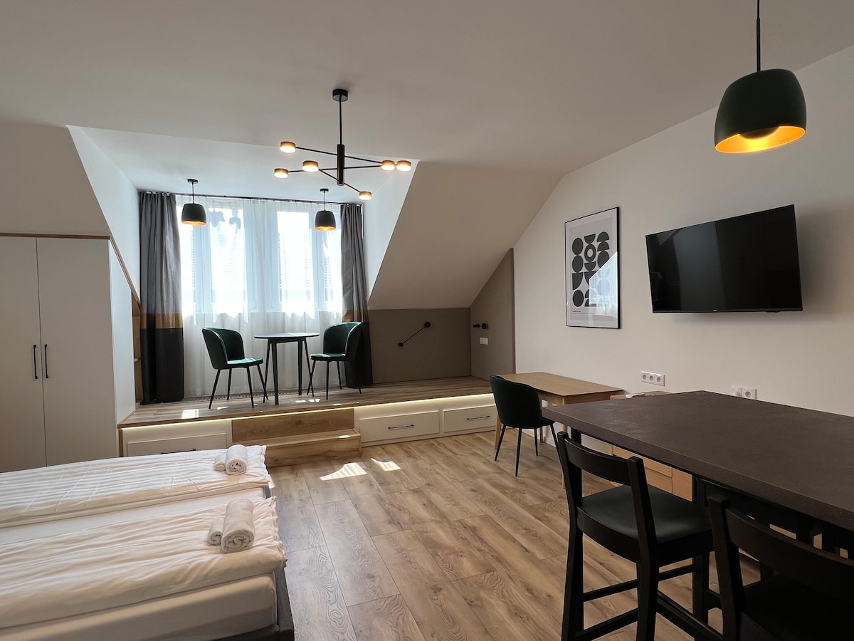 Our newly designed accommodation awaits you with a separate apartment, which can accommodate 4 people. The apartment has a separate bedroom, bathroom, and a fully equipped kitchen and dining room. The living room has a sofa that can be converted into an extra bed, with TV Netflix and HBO Go access. The apartments have separate terraces with garden furniture. Free, enclosed parking is provided in the courtyard, a well-kept, quiet garden at the back, which is even suitable for barbecuing. Hagymatikum 150 meters away.