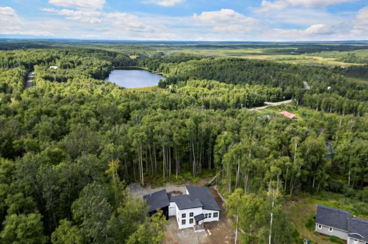 This newly constructed modern A-Frame offers a unique and luxurious accommodation opportunity. It features a comfortable king bed with crisp linens, keyless entry, washer & dryer, gas fireplace, TV, WiFi, hot tub, and large windows so you can soak up beautiful Alaskan views while surrounded by a tranquil forest. The kitchen and bathroom are stocked with everything you need to feel right at home. Enjoy the cozy and comfortable atmosphere during your private escape.