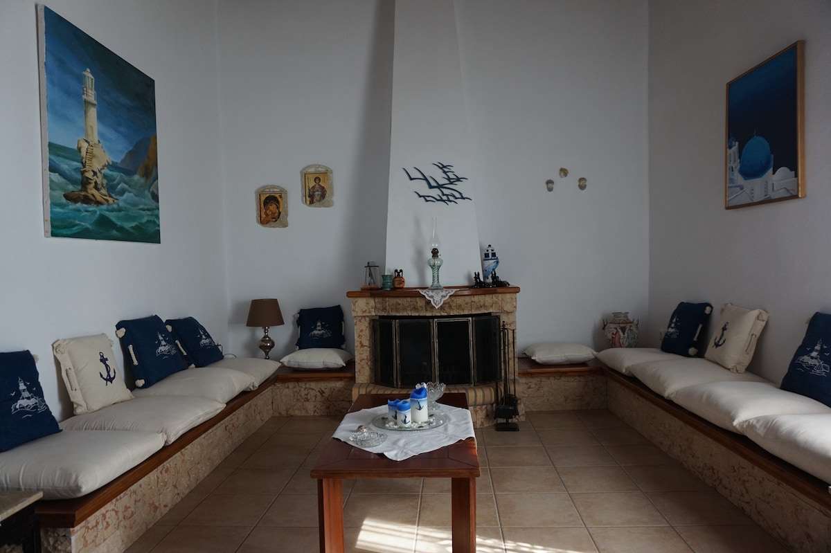 Take a step back in time and stay in this unique, beautiful old stone house, set on a steep mountain slope, surrounded by woods and terraces, ideal for walkers and nature lover's. A glorious sandy beach with two shipwrecks is a twenty five min. drive away. In the winter the Stone House has a wood burning fire making it an accommodation which is suitable for holidays in all seasons, especially walking holidays, each season having it's own special charm. Four marked walks start from Arni itself.