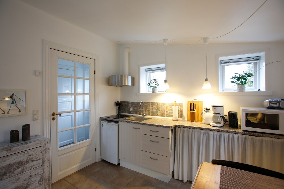 Perfect for families with 1-2 children, business travelers who need a quiet place to work - or if you just want a romantic stay with the one you love :-) Delightful modern facilities in a homely and clean environment. Less than a minute's walk to the supermarket and pizzeria. WiFi and TV (if you bring your own Netflix account, for example, no regular channels)