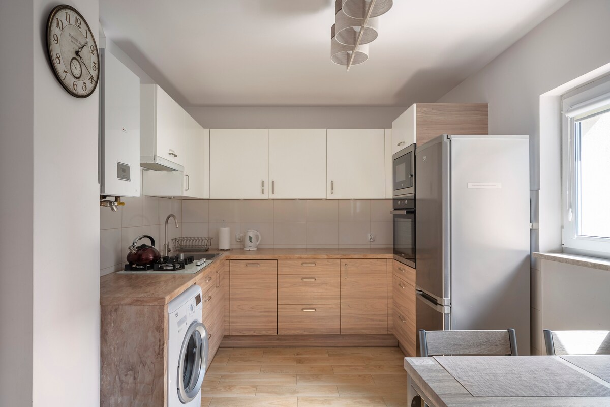 Enjoy a peaceful and stylish stay at this centrally-located place. A newly built, beautifully furnished apartment, perfect for a quiet stay in the heart of Gdańsk. Located on the greenest side of the city center, right next to Góra Gradowa. Although historical and cultural sights, shops, and restaurants are only a 10-15 min walk away, the area feels peaceful and secluded. The place offers a unique, cozy, and very comfortable design, perfect for a couple and a weekend escape.