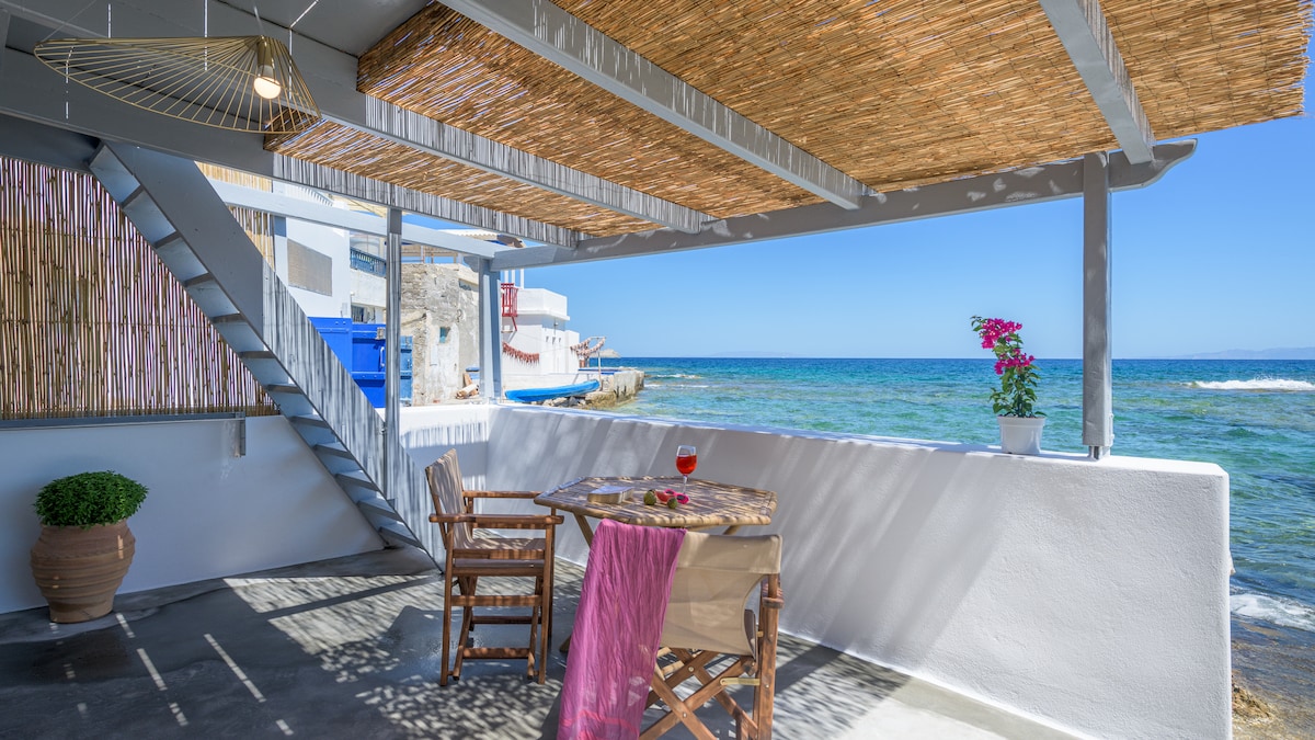 Our traditional cycladic house is a hundred years old and used to be a summer retreat for our family..It is located on the seafront in the picturesque fishing village of Mandrakia on the North coast of the island.Our home is sitting right on the water's edge. and therefor has a panoramic seaview .From our veranda you will enjoy breathtaking views of the Aegean Sea and have direct access to the water.You walk out the front door,go down a staircase into the sea for snorkeling or swimming.