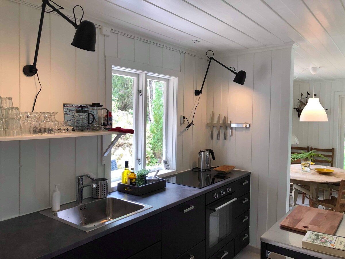 Newly renovated and fresh guest suite on Tromøy! Approx. 15 minutes drive from E-18 and Arendal city center is this cozy, private and detached apartment. The zoo is about 45 minutes away by car. The apartment is rural located on a courtyard, with a horse garden close to the apartment. Rowboat and jetty are included to visit the Tromlingene nature reserve as well as the archipelago. Motor can be rented for an additional fee. It is only a short walk to Skarestrand, and many nice hiking areas around us.