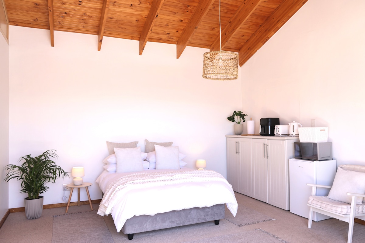 300m from our beach, an inviting, bright and private double bedroom with en suite bathroom. Comfortable double bed and towels with toiletries provided. Free fast wifi. Off street parking with own private entrance leading up to braai deck with seating and table. No shared spaces. Host resident in main house. Fridge, kettle, microwave and hairdryer. Close to local restaurants, mini market, coffee shops, gym and pool. Nearby to a world famous surf spot, running/cycling trails and nature reserves.
