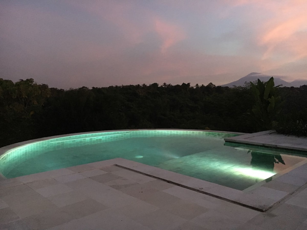 Place where silence speaks…experience being one with nature,yet in comfort cozy space…auspicious healing energy of bunut tree,stunning view to the volcanoes overlooking rain forest,sound of the running water from jungle river,natural springs access...perfect for grounding,connecting with oneself ,rejuvenating and healing. Spiritual retreat.
