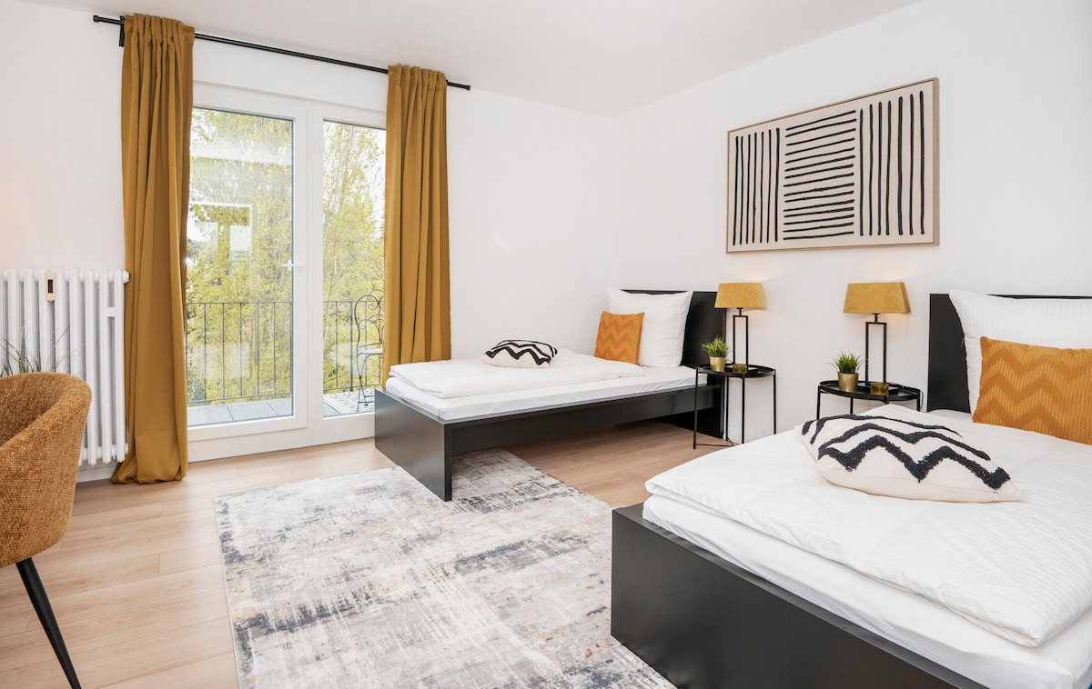 We – Dirk & Maren – cordially invite you to experience our stylish apartment in the heart of Krefeld. 🌟 Experience our modern 2-room apartment in enchanted jungle dream style – design, comfort and natural flair for up to 4 people. 🌟 Perfect for couples, small families, small groups or business travelers – centrally located, with direct access to the airport & Messe Düsseldorf. 🌟 An ideal starting point for shopping, relaxing and exploring – whether Düsseldorf, Cologne or Oberhausen.