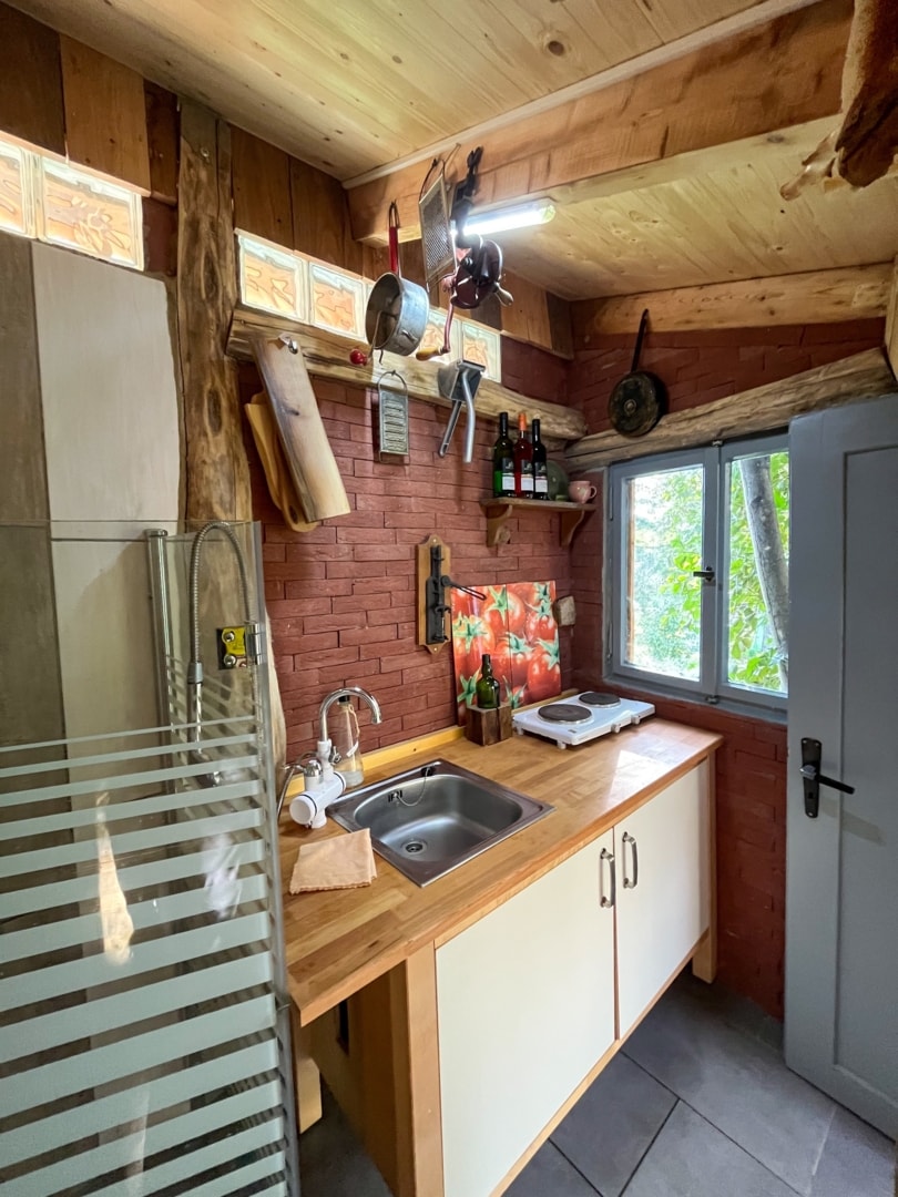 Welcome to our cozy wooden igloo. Relax in the amazing sauna and enjoy the terrace with a grill. There are other igloos nearby, 120m away. All igloos have air conditioning. They are located in the picturesque Bohemian Uplands, near the Pravčická brána, Tiské skály and other beauties. Immerse yourself in the silence of nature, find peace and quiet. Watch the sheep grazing nearby. Your stay helps us to bring life back to the romantic ruins of the Skrytín chateau.