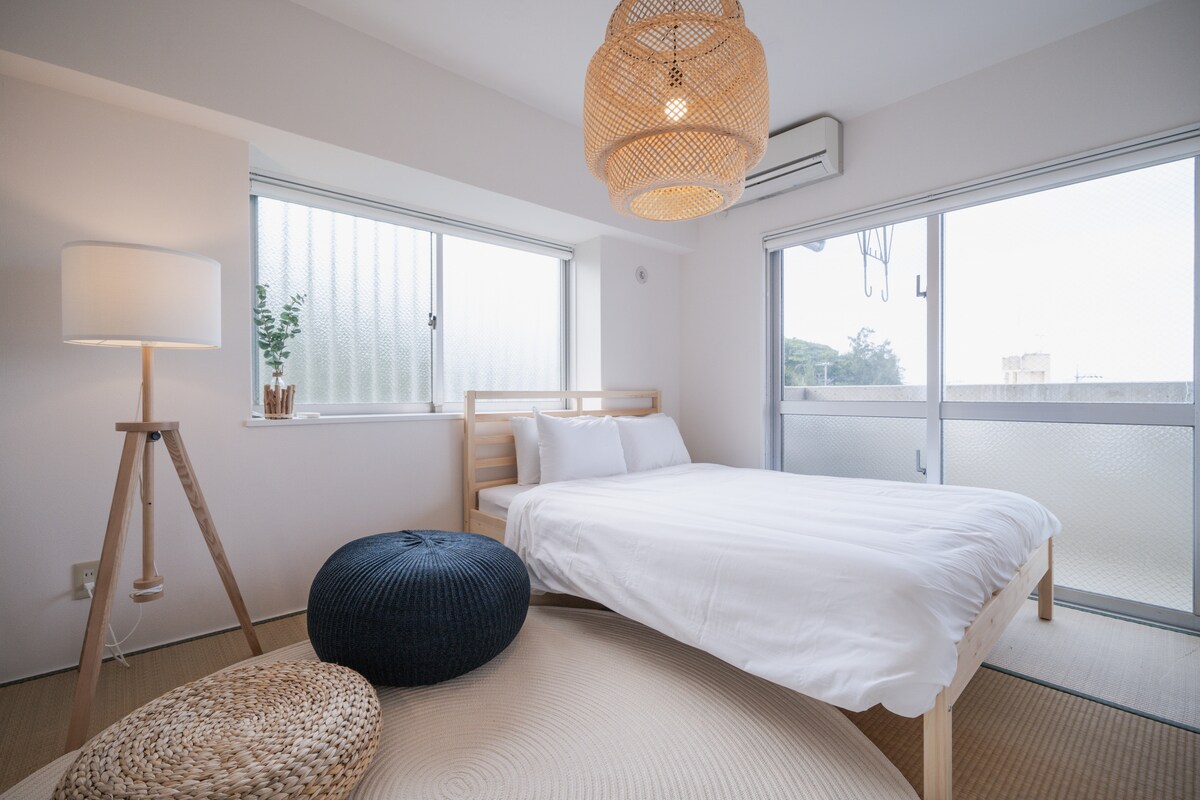 当館は「うるま市」にあり、那覇空港から車で40分、高速石川インターを降りて6分程の場所です。 人気の観光地「恩納村道の駅」へは車で5分〜10分。読谷村「やちむんの里」へは20分。北谷アメリカンビレッジへは40分程度です。(目安時間は一般道路使用の場合。北谷へは高速道路で30分程です。)人気の観光地を順を追って観光する事が出来ます。 恩納村で海を満喫→読谷「やちむんの里」→北谷アメリカンビレッジ このルートなら西海岸側を限りある時間で観光する事が出来ます! お部屋は3階建ての3階部分全フロアー。(ワンルーム) バルコニーはBBQもご利用いただけます。 快適なベッド、(ダブルベッドx2、クイーンベッドx1)合計3ベッド。周辺には大型スーパー、飲食店、ドラックストア、24時間営業のコンビニ等 全て揃っております。 ハウスルール 無断で宿泊人数追加、および無断での宿泊人数以上のリネン使用禁止です。 一時的な滞在も宿泊人数としてカウントしますので、無断でのお招き入れを禁止します。発見した場合、追加料金を請求させていただく事があります。 何かあればご相談ください。