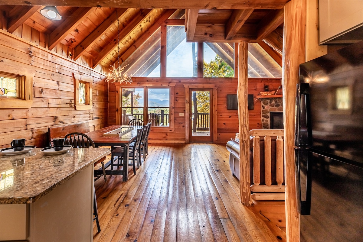 Amazing Views! Log Cabin with Hot Tub & Fire Pit