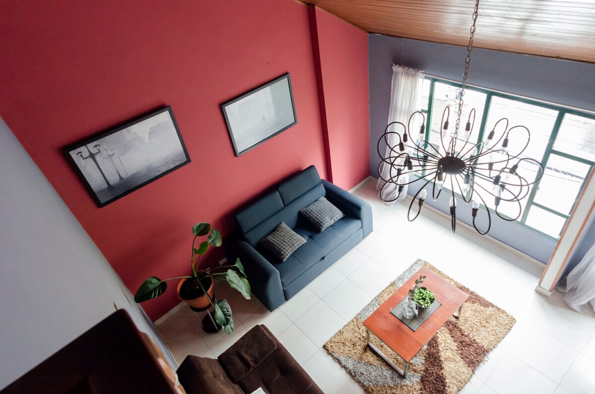 Cómodo y acogedor loft central en Bogotá con fácil acceso al transporte público y lugares turísticos. Cuenta con cocina bien dotada, cama doble cómoda, escritorio y artículos de aseo personal en el baño. Tiene una terraza privada única en la zona con vista al atardecer, además de una chimenea para disfrutar al aire libre. Ideal para quienes buscan una buena ubicación central cerca de la vida nocturna y los mejores restaurantes. Si deseas tener información más completa lee el texto a continuación