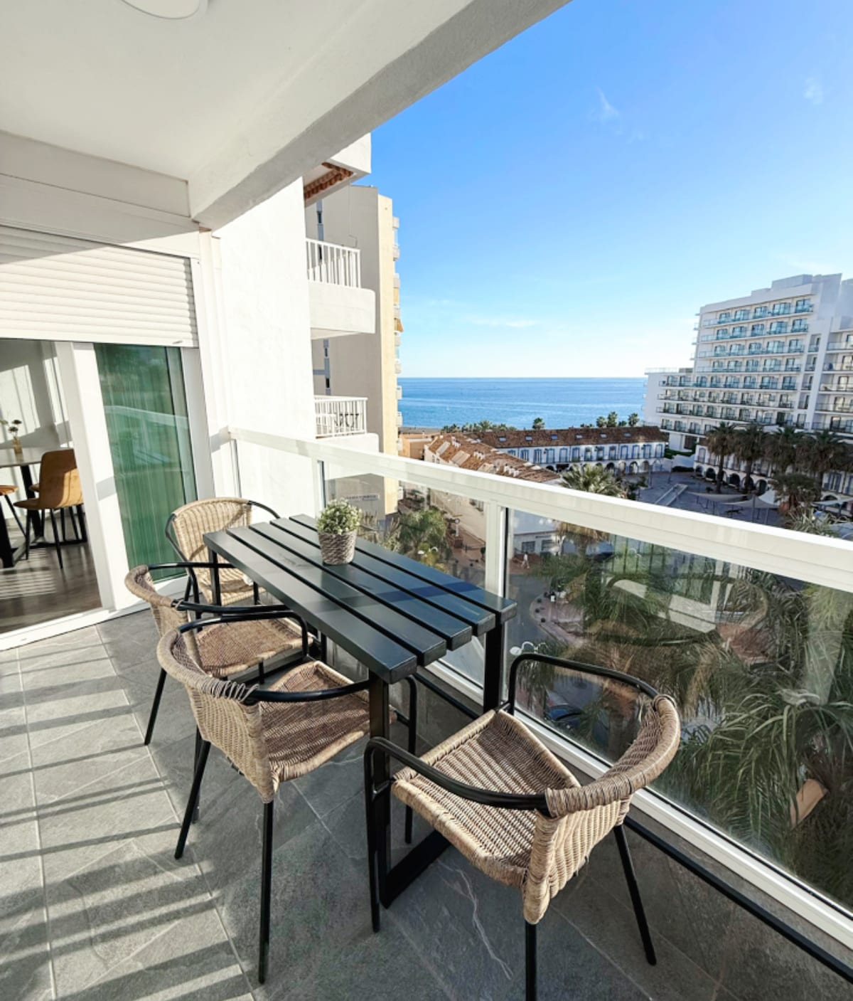 Soak up spectacular views of the beach, the promenade, and the swimming pool from this well-located apartment in the La Roca urbanisation, whether from the bedroom or with a cup of Nespresso on the patio. Light blue accents and iconic Spanish images are on show inside. Wake-up with the sunrise or take in the picturesque views of the sunset as you relax on the terrace in the Balinese sunbed and listen to the waves. You will love the bright and airy vibe provided via the sliding windows.