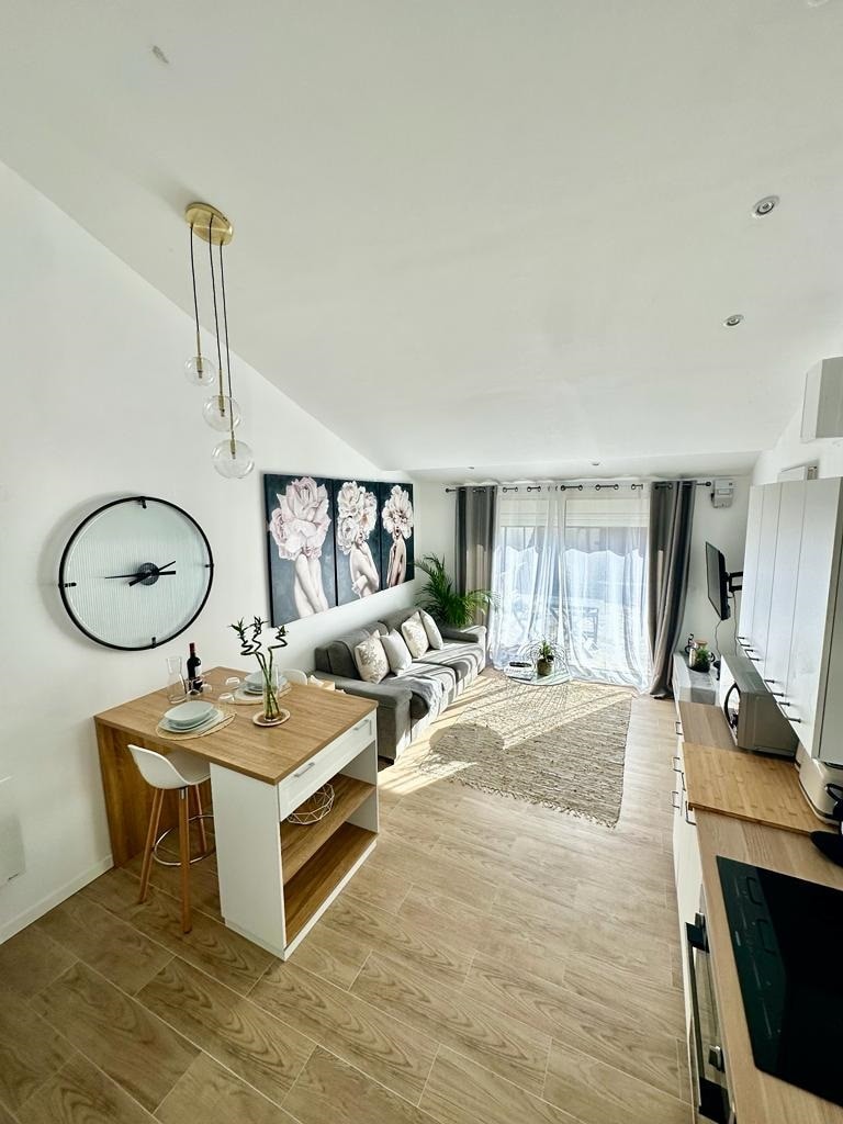 This 40 m2 air-conditioned loft with original hut-style decoration benefits from an exceptional location for the city center. The entrance to the building is on the main shopping street of La Ciotat but it overlooks the quiet parallel street with a view of the rooftops. Located facing east, you can enjoy a 6-meter balcony to have breakfast in the sun or read a book in the deckchair. Secure parking 150 m away included. A peaceful oasis in the city!