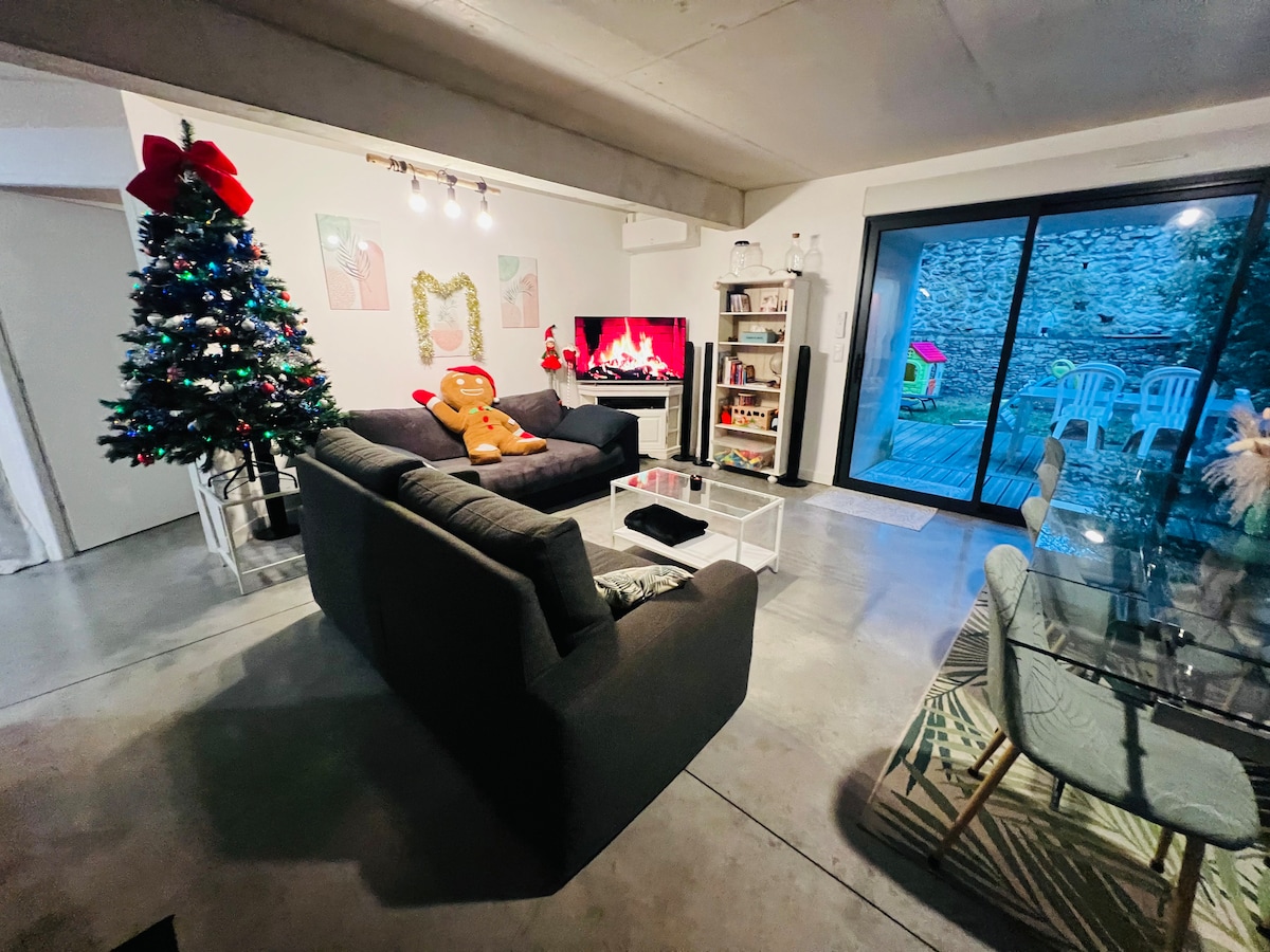F2 independent: Park in the property; put your bags in your apartment, part of our bastide. Bright, functional and quiet, it offers a comfortable area and preserves your privacy. The large bay window will allow you easy access to the garden through the "fitness area". Montpellier city center is 8 km away. The tram to Occitanie station is 10 minutes by car, bus number 23 is in front of the apartment. You can ask us for any special help.