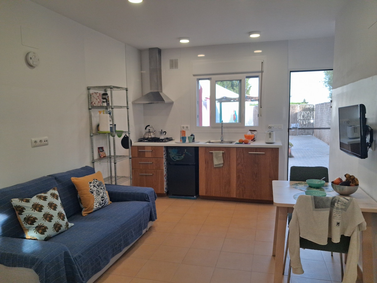 Enjoy this modern, bright, open-concept mini loft, ideal for couples. A charming porch and garden. Quiet environment, close to the charming Fuente del Gallo beach and Cala Puntalejo, with beautiful views of the cliffs, an area where surfing is practiced, close to paradisiacal coves and trails along cliffs with wonderful views of Conil. If you are looking for tranquility, enjoy unforgettable landscapes and sunsets, come and experience it. In high season we rent for a full week.