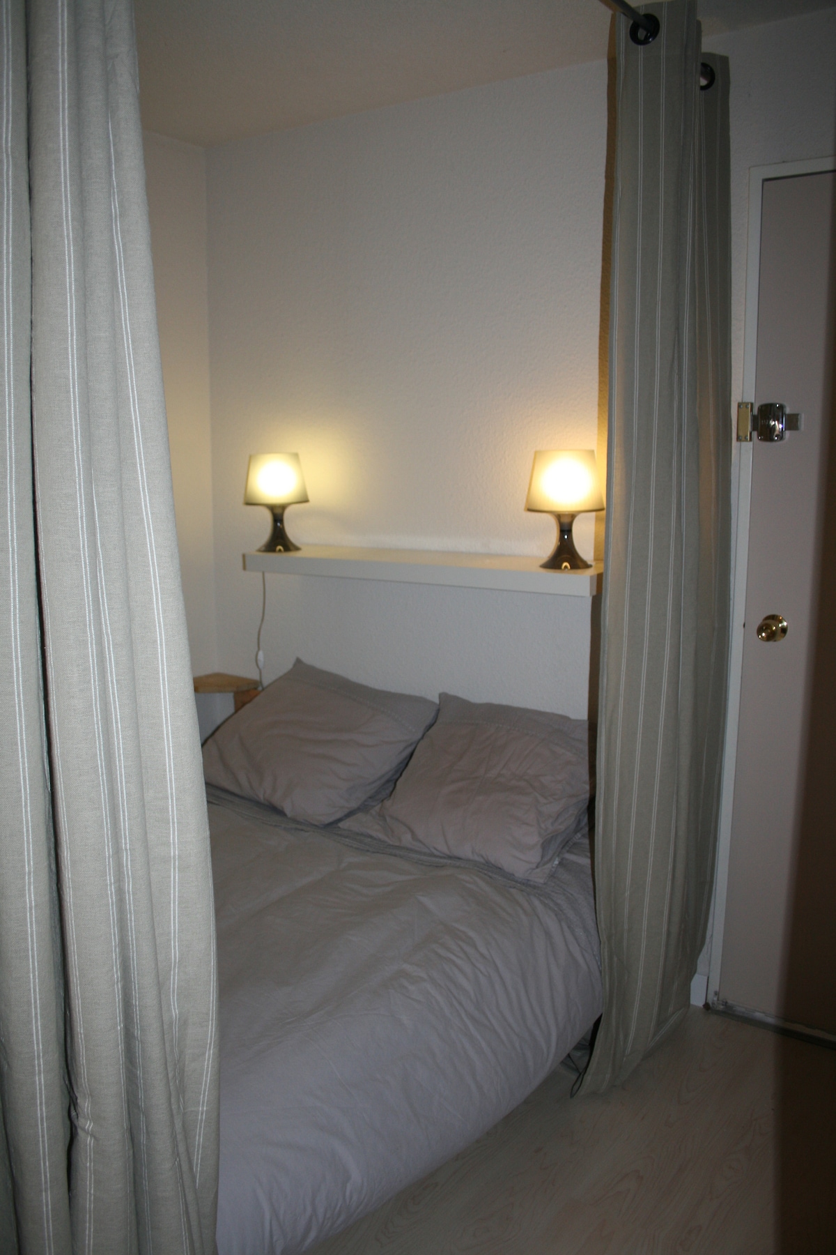 Studio cabin 20 m², angled, not overlooked and superb view of the valley. Balcony 4.5 m² Le Grand Stemm residence. Ideal for a couple or a couple + 1 child Completely refurbished accommodation. Entrance with cabin area, 2 bunk beds. Living room with closet, buffet, TV, sofa bed with real 160 mattress! High table and 4 stools In the accommodation, everything for eating and cooking, everything is new, modern, raclette grill present! Senseo. Sheets and mattress covers are mandatory! Thank you