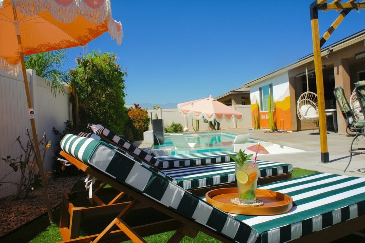 Nestled against the backdrop of the beautiful San Jacinto mountains, our retreat offers a luxury getaway surrounded by palm trees and clear blue skies in the heart of the Coachella Valley. Conveniently located near Palm Springs, Acrisure Arena, Joshua Tree, Indian Wells Tennis Garden, PGA West Stadium Course, El Paseo Shopping District, Agua Caliente Casino, and Empire Polo Club. This sanctuary provides quick and central access to the vast desert wonders and surrounding city experiences.