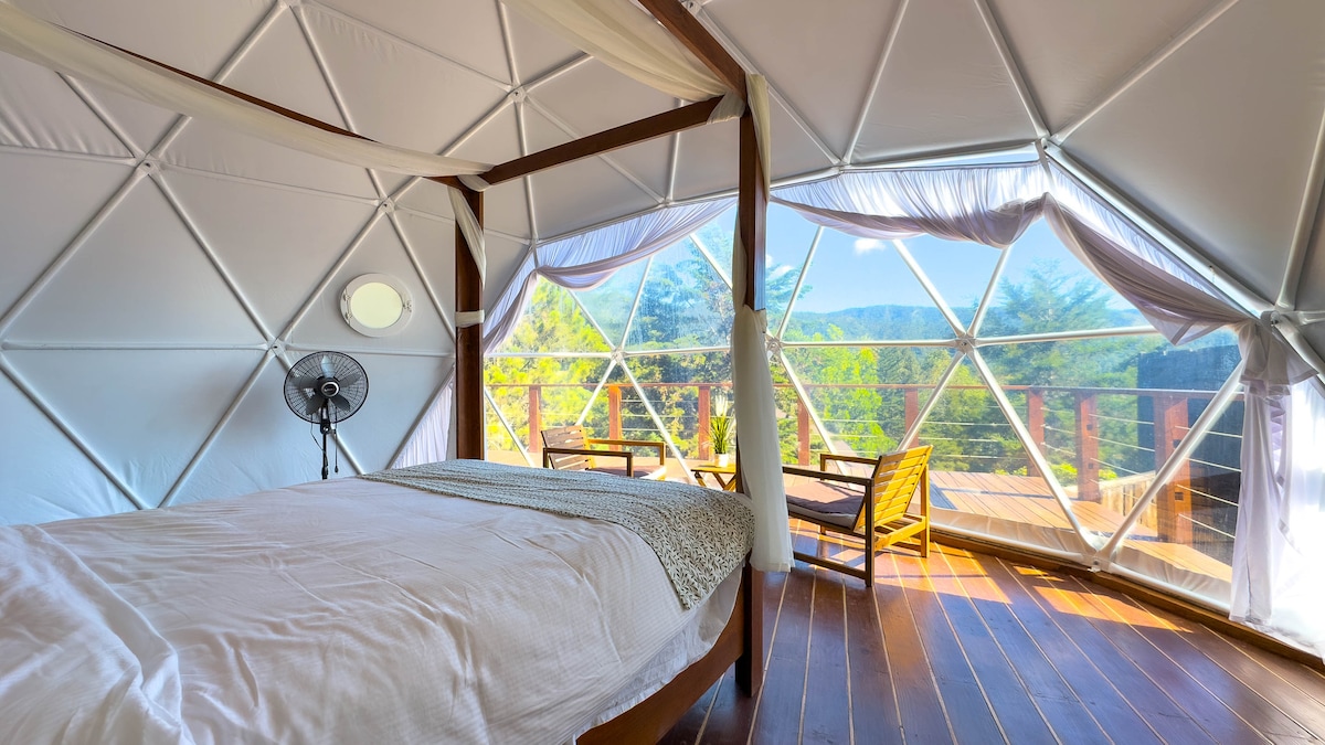 Disfruta las comodidades de la ciudad en las montañas de Jarabacoa. El domo cuenta con cocina interior y exterior, así como jacuzzi privado, baño amplio, aire acondicionado y todas las comodidades para su estadía.