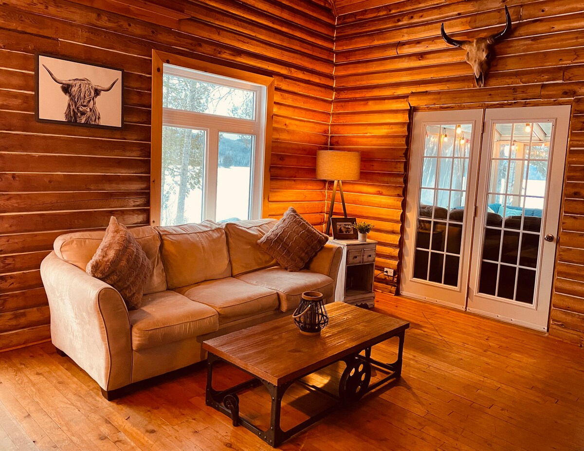 Perfect nature retreat in the heart of the Laurentian. Discover this unique Canadian log home built by local prestige company Harkins. Peaceful clear water lake directly in front of this hidden gem. ♦ Indoor wood fireplace next to comfy living room & smart TV ♦ Two Spacious Bedrooms with King & Queen bed ♦ Private Natural Lake Access ♦ Balcony with BBQ. Fire Pit ♦ Pure intimacy, no neighbours close ♦ Work desk and Wi-Fi