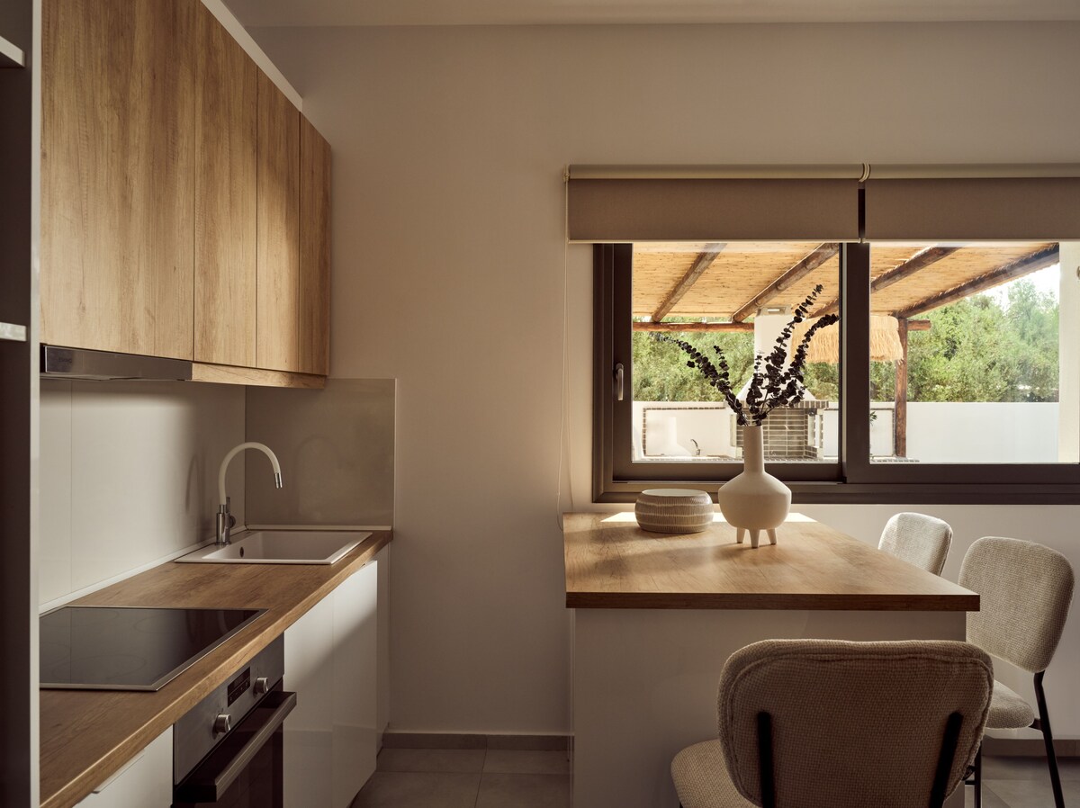 PRETTY SPITI Holiday RETREAT is set in LAGANAS, on a beautiful Zakynthos Island in the Ionian Sea. The sandy beach is only 100 meters away, and the town of Laganas is 250 meters away. Each bedroom has a private entrance, 2 private bathrooms, 1 outdoor shower, a fully equipped kitchen, and a terrace with an outdoor sitting area overlooking the 500-square-meter fenced flower garden. The house is decorated with love and attention to detail, transforming it into a comfortable holiday house.