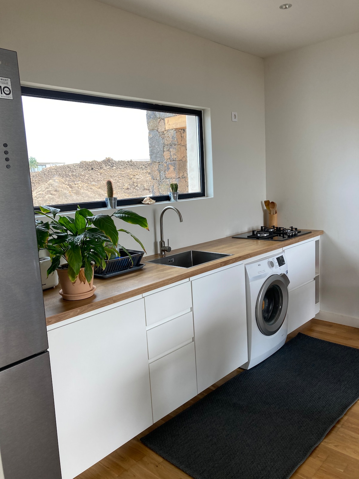 Salty Rocks is a modern, one-bedroom holiday house with great attention to form and function, stylish design, plenty of comfort and all the equipment you might need. The real eye-catcher is the breathtaking view of the Calderón Hondo volcano. The house features a spacious open-plan kitchen and living area, a luxurious bathroom and a hotel-style bedroom. There is a covered and open-air deck, plus parking. Enjoy the eternal spring of Fuerteventura and the endless beauty of the salty lava rocks.