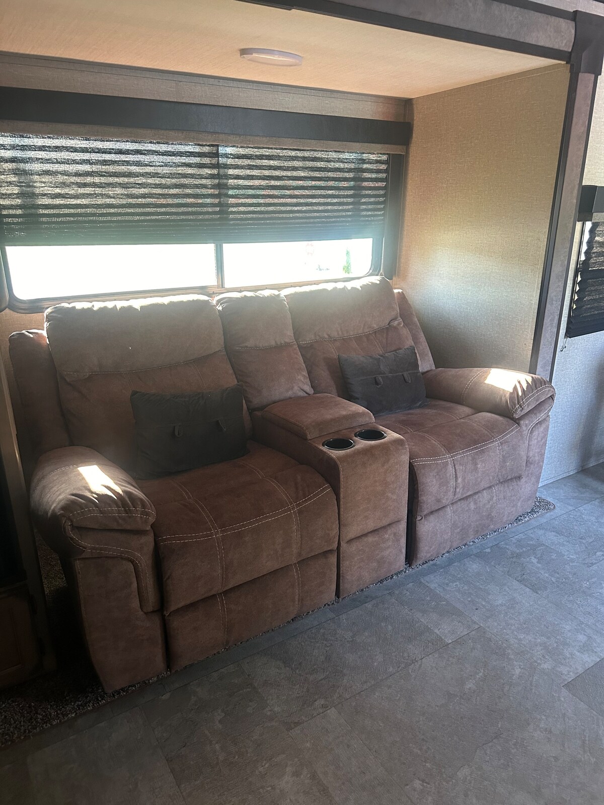Enjoy a rejuvenating stay at our horse ranch, in a modern and updated beautiful RV. You’ll have a comfy queen bedroom and two full size bunks, as well as a futon couch and a dinette. Enjoy views of natures and horses all around you during your days at the ranch. Light a fire at night and roast some marshmallows! Although you have a full kitchen and bathroom in the RV, we also have a bathhouse on property with large private bathrooms with showers, and laundry machines and a full kitchen.