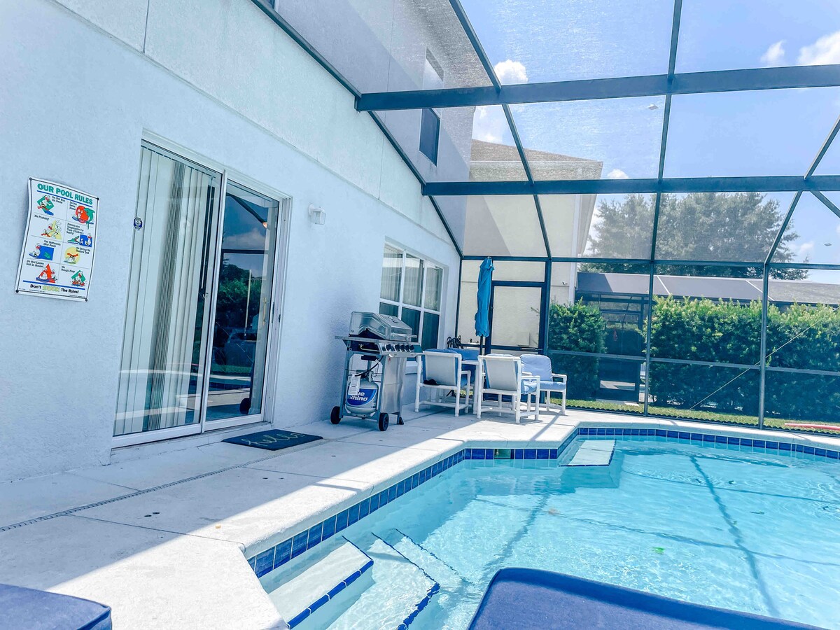 ABOUT THE HOME This luxurious and spacious home is situated in the high sought after gated High Grove Community. This Spanish/Mediterranean style 4 - bedroom, 2.5 - bath vacation home is located minutes away from the world famous Disney, theme parks, and golf courses for you and your family. The home boasts a fabulous private pool and spa, surrounded by high rise flower with roses and great games room. A gorgeous community clubhouse that features a fitness room, games room and a playground.