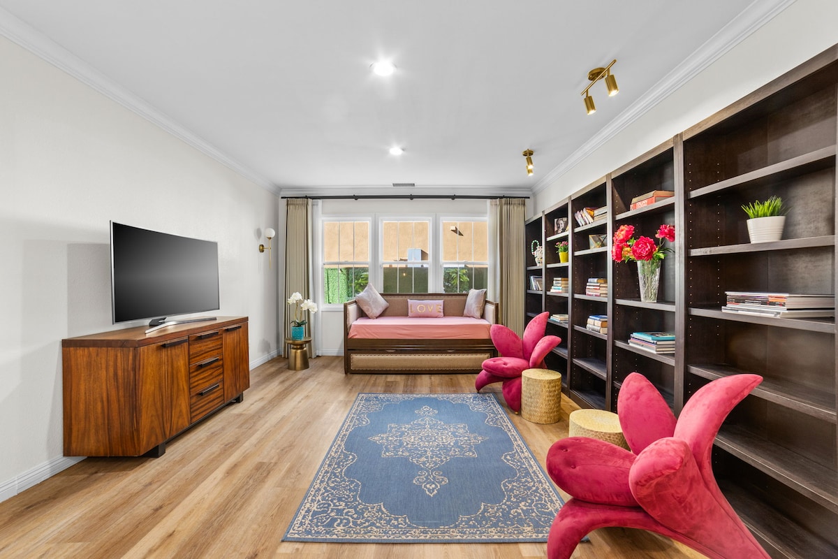 Near Mission Inn & Festival of Lights, downtown and UCR. Enjoy this mid-century time capsule with private entrance, updated amenities and a king size bed. Private bathroom with large walk in shower surrounded by glass title accents. KITCHENETTE opens to living room accompanied by indoor fireplace. Two TVs. Vast unobstructed views! Completely private tucked away in downtown Riverside. within walking distance to Fairmount Park/Lake. Within 1 Mile of the famous MISSION INN, and 4.6 miles from UCR.