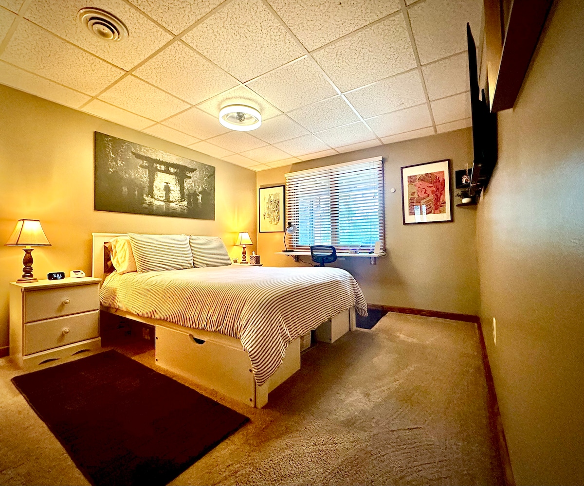 This expansive one-bedroom apartment is designed for guests who want space, comfort, and privacy. Featuring cathedral ceilings, a full-size kitchen, a massive king bedroom, private balcony and a spa-style bathroom with dual sinks and a deep soaking tub, it’s an ideal retreat for couples or solo travelers who enjoy room to unwind. While it can accommodate up to four, the layout is best suited for two guests who value generous living space, upgraded amenities, and a relaxed, residential feel.