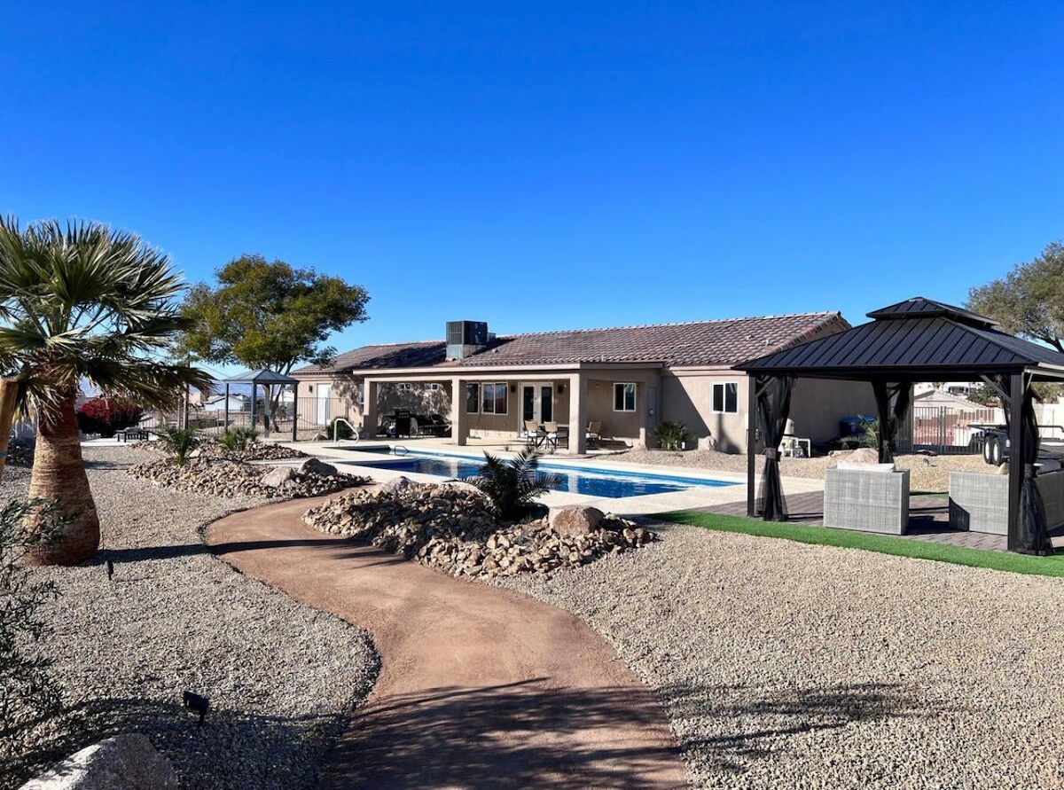 Welcome to Hangover at Havasu! With a beautiful lake view, a private pool, heated spa and a fully loaded game room and much more. This home delivers the ultimate resort experience while still feeling warm, inviting, and just like home. Furnished with sturdy furniture and hotel quality bedding and towels. Located just minutes from the lake, boat launches, off-roading trails, great dining, and the world-famous London Bridge, this retreat is the perfect launchpad for everything Havasu has to offer.