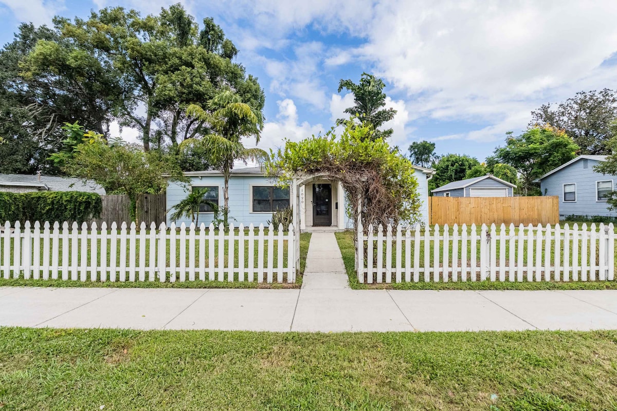 The Little Blue House is a studio,guest house in our backyard. Separate entrance on the opposite side of the main house. This cozy comfortable room has a microwave, small refrigerator/freezer, and Kurig coffee maker( coffee included).It is perfectly located in the historic East Lake Morton, walking distance to Lake Morton, Lake Mirror, and downtown Lakeland. Perfect location to enjoy Lakeland.