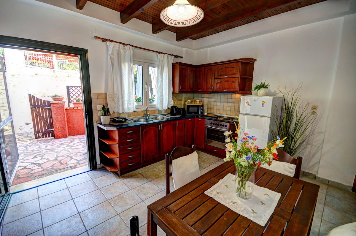 A beautiful and comfortable studio which includes a bedroom, a cosy kitchen, a bathroom and a private balcony with wonderful view! Reasons that my studio will like: light, comfortable bed and comfortable environment. My space is suitable for couples and families.Τhe complex consists of 5 studios and 2 houses.