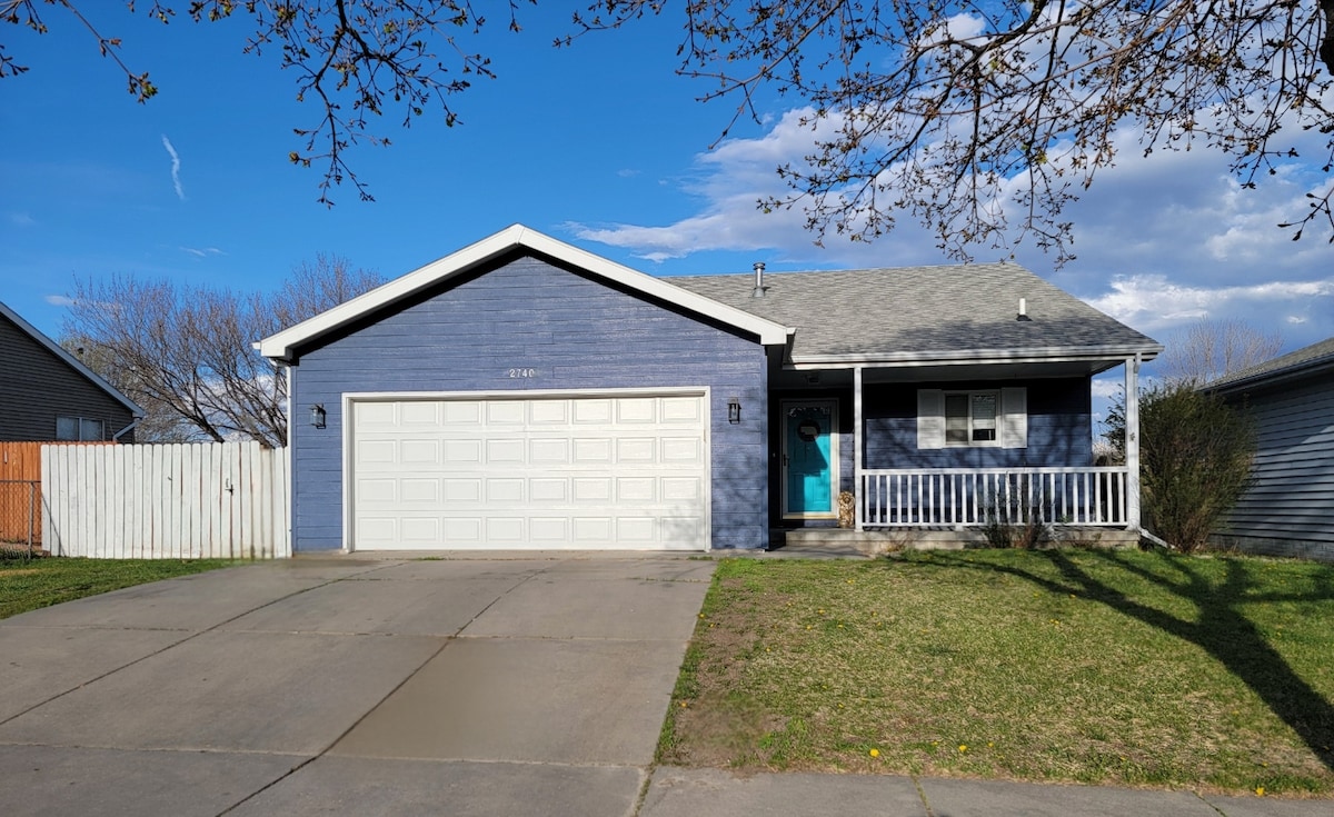 Relax with the whole family at this peaceful place to stay. This home offers 3 bedrooms, 5 beds, 3 TVs, 2 electric fireplaces, and a xtra large bathroom with a free-standing soaking tub. Main/first floor laundry room equiped with brand new samsung washer & dryer. There is a garage that's not accessible at the moment, I apologize for this inconvenience. Along driveway that can park 3 midsized vehicles. A completely fenced-in smaller backyard with an all seasonal back patio for you to enjoy.