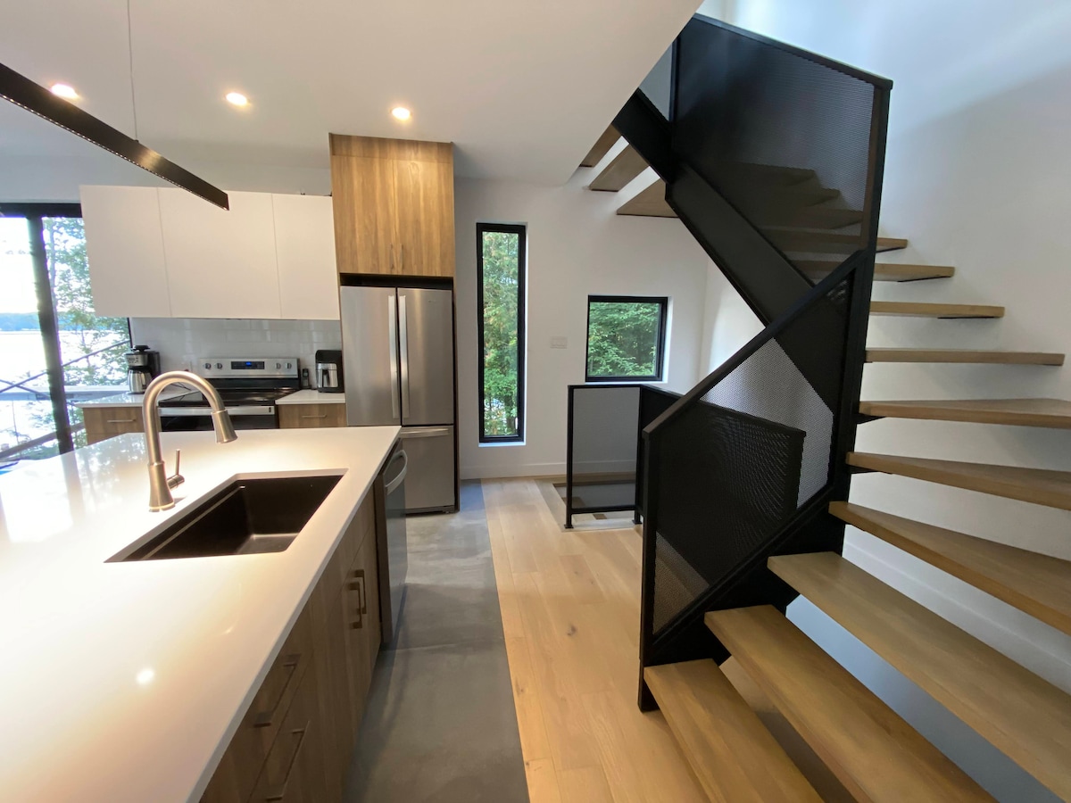 ★ One of the most unique chalets in Mont-Tremblant★ Unique & Secluded all White Glass Treehouse with Breathtaking Mont-Tremblant mountains views! The cabin is majestically glazed architectural space combining natural simplicity and contemporary luxury, 10 min from village of Mont-Tremblant, Ski Tremblant. Nestled on the end of the cliff with a fully glazed living space, Bathtub with view, The Panoramic terrace & Private hot tub for an unparalleled relaxation experience. Canadian Designer.