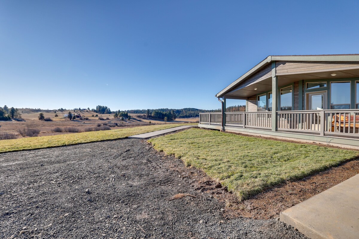 Enjoy a quiet space in the country with gorgeous sunrise and sunset views from the back porch! Located on a horse farm, with overnight stabling available, and great trails close by. Small fenced yard, up to 2 dogs OK. 20 minutes from Moscow, 30 minutes from Pullman makes it a great choice for busy university weekends. Full kitchen, gas grill on porch Special pricing for animals; Horses: $20/day/horse Payable by check or cash upon arrival