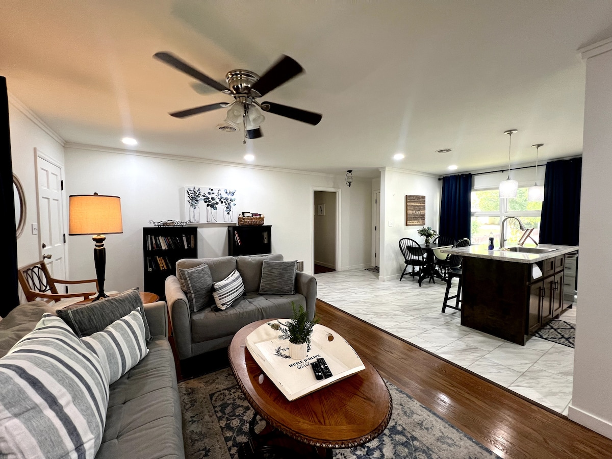 Welcome to Roosevelt Cottage! This comfy, cozy and super cute 3 Bedroom, 1 Bath home offers an Open & Spacious plan. Only 1.5 miles from historic Downtown Florence & 1.2 miles from the University of North Alabama. Our Cottage is close to everything! Stocked kitchen, free parking on site, covered porch overlooking a fenced backyard. Whether you are looking for fun & adventure in The Shoals, or you just need a peaceful, relaxing getaway, this home is perfect. Check out our reviews❣️